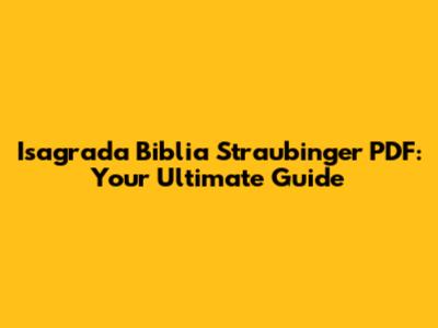 Isagrada Biblia Straubinger PDF: A Comprehensive Guide