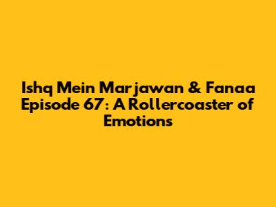 Hey everyone! Let's dive deep into the thrilling world of Ishq Mein Marjawan and Fanaa! Today, we're dissecting episode 67, a real heart-pounder, to unpack all the drama, suspense, and unexpected twists that kept us glued to our screens. Get ready for a wild ride, because this episode was packed with secrets, revelations, and enough cliffhangers to make your head spin. We'll break down the key moments, analyze the characters' actions, and try to predict what's coming next. So, grab your popcorn, settle in, and let's get started. Remember, we're all fans here, so feel free to share your thoughts and theories in the comments below! We're in this together, guys!