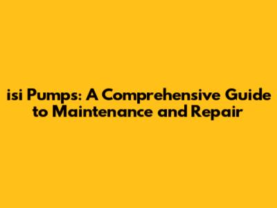 Isi Pumps: A Comprehensive Guide To Maintenance And Repair