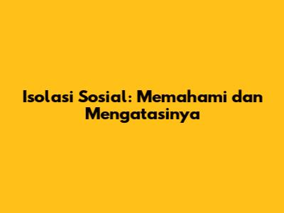 Isolasi Sosial: Memahami Dan Mengatasinya