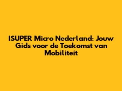 Isuper Micro Nederland: Alles Over Jouw Micro-Mobiliteit