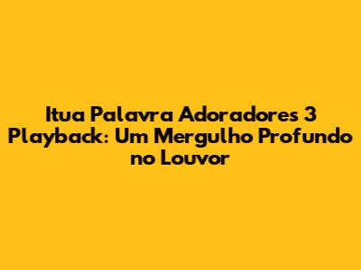 Itua Palavra Adoradores 3 Playback: Guia Completo E Otimizado