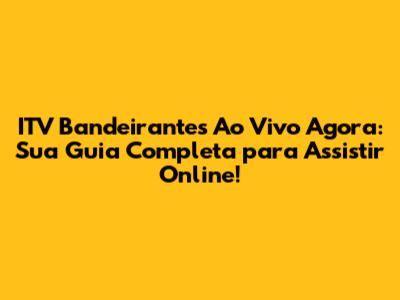 ITV Bandeirantes Ao Vivo: Assista Online Agora!