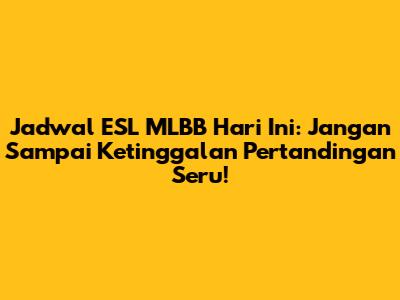 Jadwal ESL MLBB Hari Ini: Jam Main & Tim