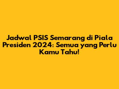 PSIS Semarang , tim kebanggaan warga Semarang, akan kembali berlaga di Piala Presiden 2024! Buat kalian **pendukung setia Mahesa Jenar, pasti udah gak sabar kan pengen tau jadwal lengkap pertandingan PSIS di turnamen pramusim bergengsi ini? Nah, tenang aja, guys! Di artikel ini, kita bakal kupas tuntas informasi terbaru seputar jadwal, lawan tanding, lokasi pertandingan, dan hal-hal menarik lainnya yang perlu kalian ketahui. Jadi, jangan kemana-mana, simak terus ya!