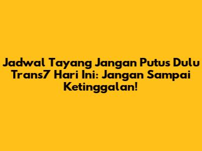 Nah, buat kamu yang udah nggak sabar pengen nonton kelanjutan cerita "Jangan Putus Dulu", ini dia jadwal tayangnya di Trans7 hari ini. Penting banget dicatat ya, guys, biar nggak salah jam tayang dan akhirnya kelewatan momen-momen seru!