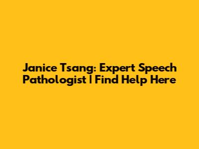Janice Tsang: Expert Speech Pathologist | Find Help Here