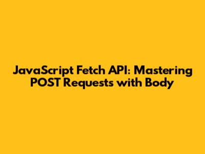 JavaScript Fetch API: Mastering POST Requests With Body