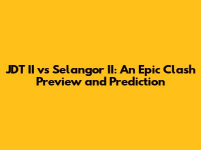 Alright, football fanatics, get ready! We're diving deep into an upcoming clash that's got everyone buzzing: Johor Darul Ta'zim II (JDT II) versus Selangor II. This isn't just any match; it's a battleground where pride, skill, and the relentless pursuit of victory collide. We're going to break down everything you need to know, from the teams' recent performances to the key players who could make or break the game. So, grab your snacks, settle in, and let's dissect this exciting encounter!