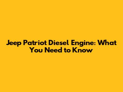 Jeep Patriot Diesel Engine: What You Need To Know
