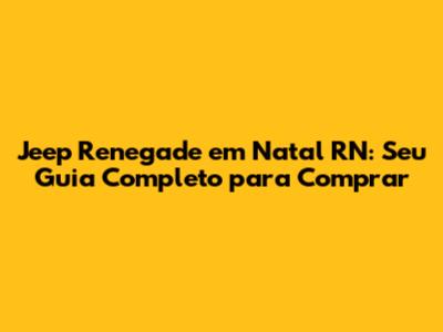 Jeep Renegade Em Natal RN: Seu Guia Completo Para Comprar