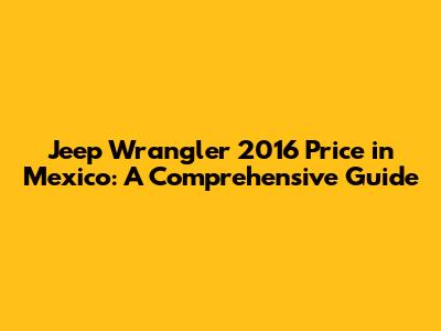 Jeep Wrangler 2016 Price In Mexico: A Comprehensive Guide