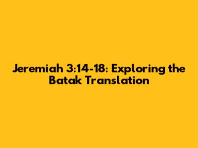 Hey guys! Today, we're diving deep into a fascinating corner of biblical studies, specifically Jeremiah 3:14-18 and its translation into the Batak language. Understanding scripture across different languages and cultures provides incredible insight into how these texts resonate with diverse communities. So, let's get started and unwrap the layers of meaning and context!