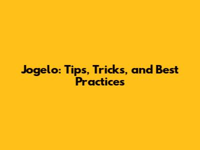 Jogelo: Tips, Tricks, And Best Practices