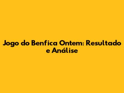 Jogo Do Benfica Ontem: Resultado E Análise