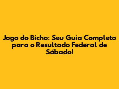 Jogo Do Bicho: Descubra O Resultado Federal De Sábado!