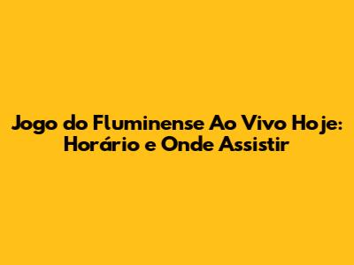 Jogo Do Fluminense Ao Vivo Hoje: Horário E Onde Assistir