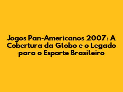 Ah, os Jogos Pan-Americanos de 2007! Que evento épico, né, galera? E a Globo, como sempre, mandou muito bem na cobertura, trazendo toda a emoção e os detalhes das competições para dentro da nossa casa. Bora mergulhar nesse universo e relembrar como foi essa festa esportiva, focando na cobertura da Globo e no impacto que teve para o esporte brasileiro. Preparem a pipoca, porque a gente vai fazer uma viagem no tempo!