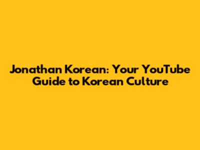 Jonathan Korean: Your YouTube Guide To Korean Culture