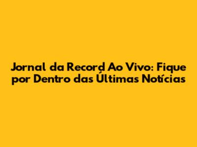 Jornal Da Record Ao Vivo: Notícias E Cobertura Completa