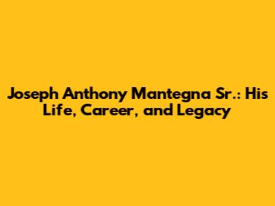 Let's dive into the fascinating life of Joseph Anthony Mantegna Sr.! You might be wondering, "Who exactly is this guy, and why should I care?" Well, buckle up, because we're about to explore the story of a man whose influence quietly shaped the world around him. We will cover his early life, career, and the legacy he left behind. So, let’s get started and uncover the layers of Joseph Anthony Mantegna Sr.'s life.