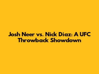 Josh Neer Vs. Nick Diaz: A UFC Throwback Showdown