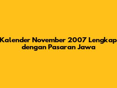 Kalender November 2007 Lengkap Dengan Pasaran Jawa