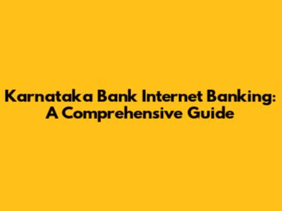 Karnataka Bank Internet Banking: A Comprehensive Guide