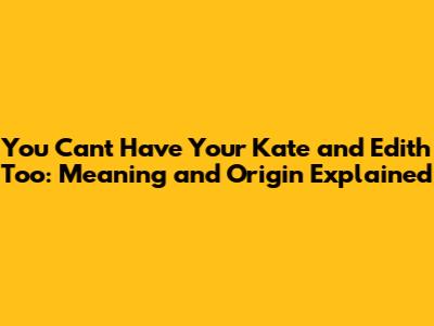 Unpacking the Meaning: What Does It Really Mean to Have Your Kate and Edith Too?