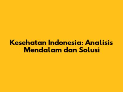 Kesehatan Indonesia: Analisis Mendalam Dan Solusi