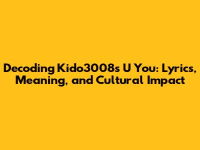 Kido3008's 'U You': Lyrics, Meaning, And Cultural Impact