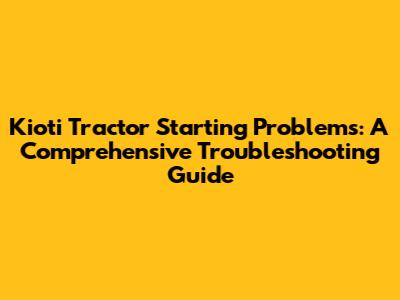 Kioti Tractor Starting Issues: Troubleshooting Guide