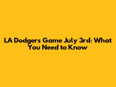 LA Dodgers Game July 3rd: What You Need To Know