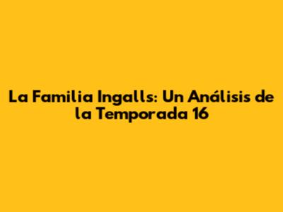 La Familia Ingalls: Un Análisis De La Temporada 16