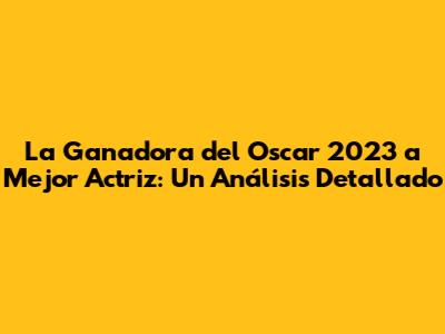 La Ganadora Del Oscar 2023 A Mejor Actriz: Un Análisis Detallado
