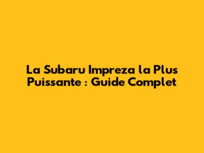 La Subaru Impreza La Plus Puissante : Guide Complet