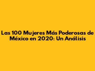 Las 100 Mujeres Más Poderosas De México En 2020: Un Análisis