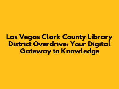 Hey guys! Ever wondered how to unlock a treasure trove of digital content without spending a dime? Well, buckle up because we're diving deep into the Las Vegas Clark County Library District (LVCCLD) and its awesome Overdrive service. This is where all the magic happens, giving you access to a vast collection of eBooks, audiobooks, and more, all from the comfort of your own home. Let's explore how you can tap into this incredible resource and make the most of what it offers!