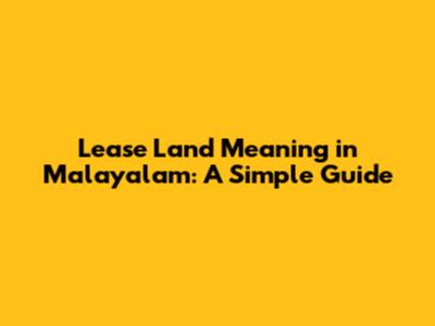Lease Land Meaning In Malayalam: A Simple Guide