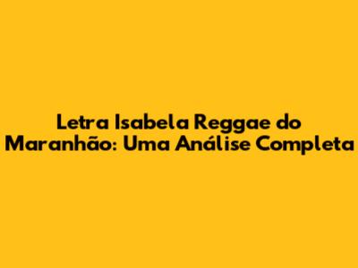 Letra Isabela Reggae Do Maranhão: Uma Análise Completa