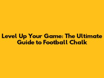 Level Up Your Game: The Ultimate Guide To Football Chalk
