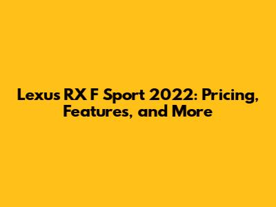 Lexus RX F Sport 2022: Pricing, Features, And More
