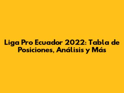 Hey guys! Ready to dive into the exciting world of Ecuadorian football? This article is your ultimate guide to the Liga Pro Ecuador 2022 season! We'll be looking at the tabla de posiciones (standings), breaking down the key moments, and giving you all the info you need to stay in the loop. Buckle up, because we're about to explore the heart of Ecuadorian soccer!