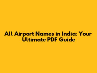 Why You Need an All India Airport Names PDF