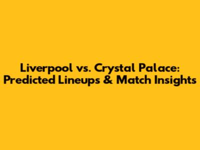 Liverpool Vs. Crystal Palace: Predicted Lineups & Match Insights