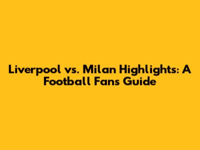 Liverpool Vs. Milan: Highlights & Where To Watch