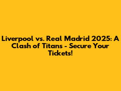 Liverpool Vs. Real Madrid 2025: Secure Your Tickets Now!
