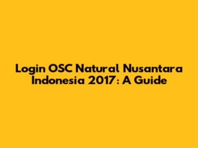 Login OSC Natural Nusantara Indonesia 2017: A Guide