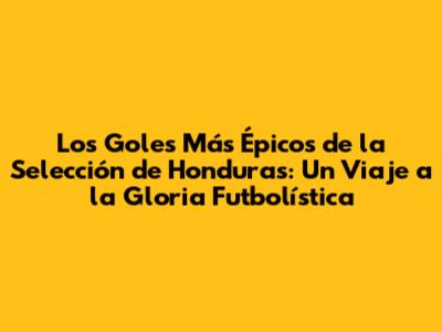Los Goles Más Épicos De La Selección De Honduras: Un Viaje A La Gloria Futbolística