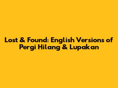 Lost & Found: English Versions Of Pergi Hilang & Lupakan